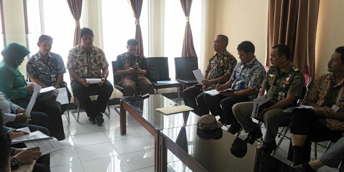 SLAWI – Setelah melaksanakan inspeksi dan pemantauan ke sejumlah lokasi, Tim Sistem Keamanan Pangan Terpadu (SKPT) melaksanankan evaluasi terhadap hasil temuan selama inspeksi di Hotel Sankita Kecamatan Bojong, Kamis (27/7). Acara yang dipimpin secara langsung oleh Kepala Dinas Kesehatan Kabupaten Tegal, dr. Hendadi Setiaji, M. Kes, juga dihadiri dari unsur Polres Tegal, Dinas Perdagangan Koperasi dan UKM, Dinas Kelautan Peikanan dan Peternakan, Bappeda, Satpol PP serta dari Dinas PM dan PTSP Kabupaten Tegal.