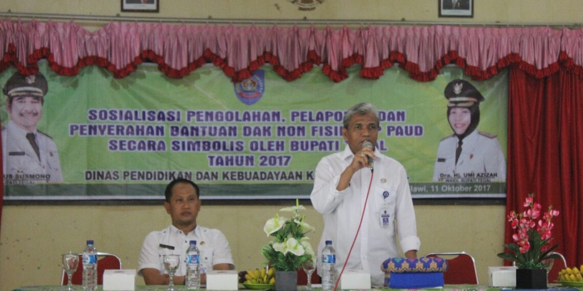 Hal tersebut dikatakan oleh Kepala Dinas Pendidikan dan Kebudayaan (Dikbud) Kabupaten Tegal, Retno Suprobowati, saat Sosialisasi Pengelolaan, Pelaporan Dan Penyerahan Bantuan Dak Non Fisik Bop Paud 2017 di Aula SMK Negeri 1 Slawi, Rabu (11/10). “Dengan bantuan tersebut, per siswa indeks yang diperoleh sebesar Rp. 600 ribu dalam setahun” ujarnya.