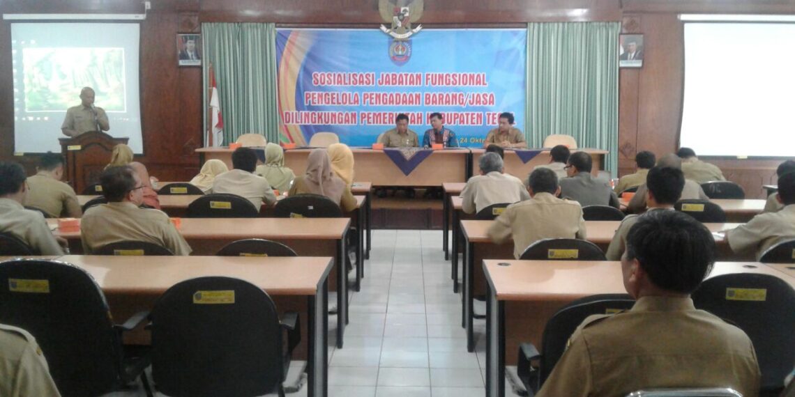 SLAWI – Pemerntah Kabupaten Tegal melalui Badan Kepegawaian Pendidikan dan Pelatihan Daerah (BPPD) menggelar sosialisasi jabatan fungsional pengelola pengadaan barang/jasa pemerintah lingkup Pemkab Tegal. Acara tersebut dibuka oleh Sekretaris Daerah Kabupaten Tegal, dr. Widodo Joko Mulyono, M. Kes, MM, mewakili Bupati Tegal di Aula Badan Pengelolaan Keuangan dan Aset Daerah (BPKAD) Kabupaten Tegal, Selasa (24/10).