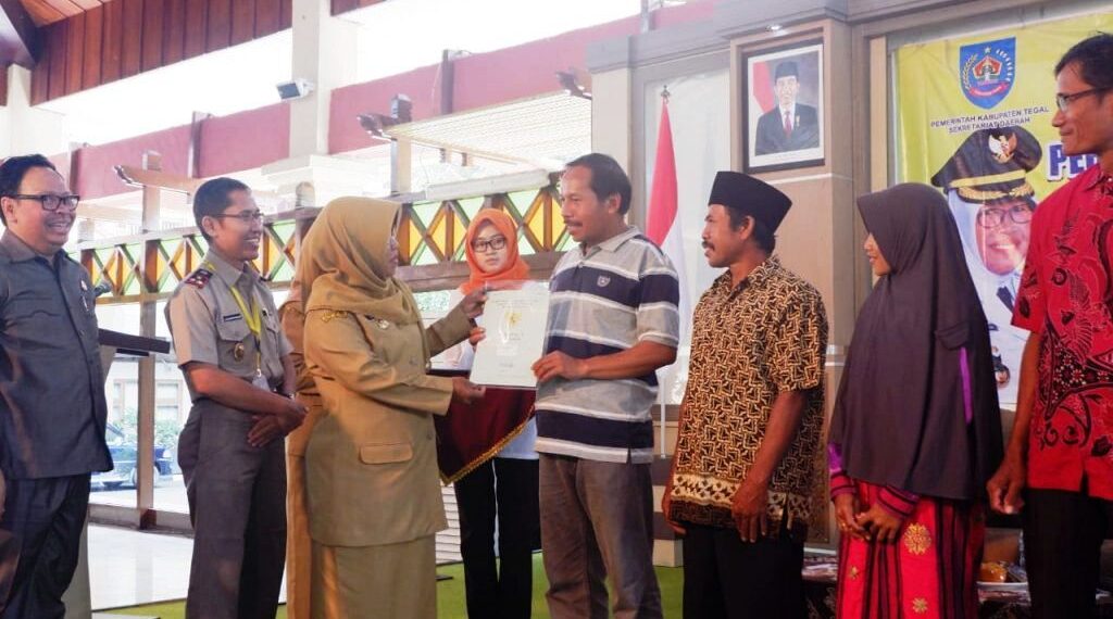Saat penyerahan sertipikat di Lapangan Dukuhsalam Slawi, Jokowi membagikan 4.999 sertipikat tanah kepada peserta Program Prona yang meliputi warga dari Kabupaten Tegal, Brebes, Kota Tegal dan Pemalang.