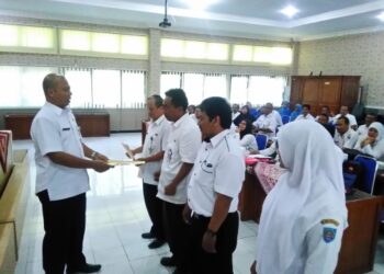 Kepala Badan Kepegawaian Pendidikan dan Pelatihan Daerah (BKD) Kabupaten Tegal, Drs. Edi Budiyanto, M. Pd menyerahkan Surat Izin Belajar dan ...