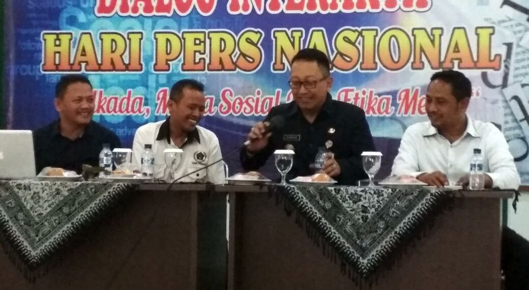 SLAWI – Guna menumbuhkan kesadaran penggiat media sosial agar selalu bijak dalam bermedsos menjelang pelaksanaan Pilkada Serentak 2018, Pemerintah Kabupaten Tegal melalui Bagian Humas dan Protokol Sekretariat Daerah Kabupaten Tegal bekerja sama dengan Pengurus Persatuan Wartawan Indonesia (PWI) Kabupaten Tegal menggelar dialog interaktif di Gedung Muslimat NU Slawi dengan mengusung tema Pilkada, Media Sosial dan Etika Media, Kamis (1/3). Acara ini diadakan juga dalam rangka memperingati Hari Pers Nasional (HPN) 2018.