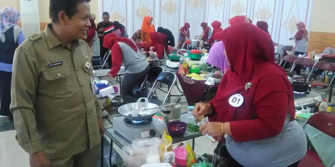 SLAWI – Sebanyak 70 orang yang tergabung dalam 35 tim dari Tim Penggerak (TP) PKK Kecamatan dan Perangkat Daerah Se Kabupaten Tegal serta Gabungan Organisasi Wanita (GOW) mengikuti lomba inovasi olahan ikan yang digelar oleh Dinas Kelautan Perikanan dan Peternakan Kabupaten Tegal, Kamis (10/4). Acara yang diselenggarakan keempat kalinya tersebut mengambil tempat di Gedung Korpri bertujuan untuk mengkampanyekan gerakan makan ikan (Gemarikan) bagi masyarakat terutama ibu-ibu.
