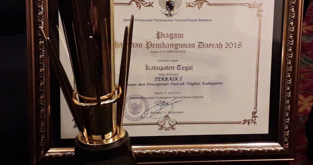 Penghargaan terbaik di bidang perencanaan dan pencapaian daerah untuk kategori kabupaten ini diserahkan secara langsung oleh Presiden RI Joko Widodo kepada Pjs Bupati Tegal Sinoeng N Rachmadi pada pelaksanaan Musrenbangnas RKP 2019 di Hotel Sahid Jakarta hari Senin (30/4) pagi tadi.