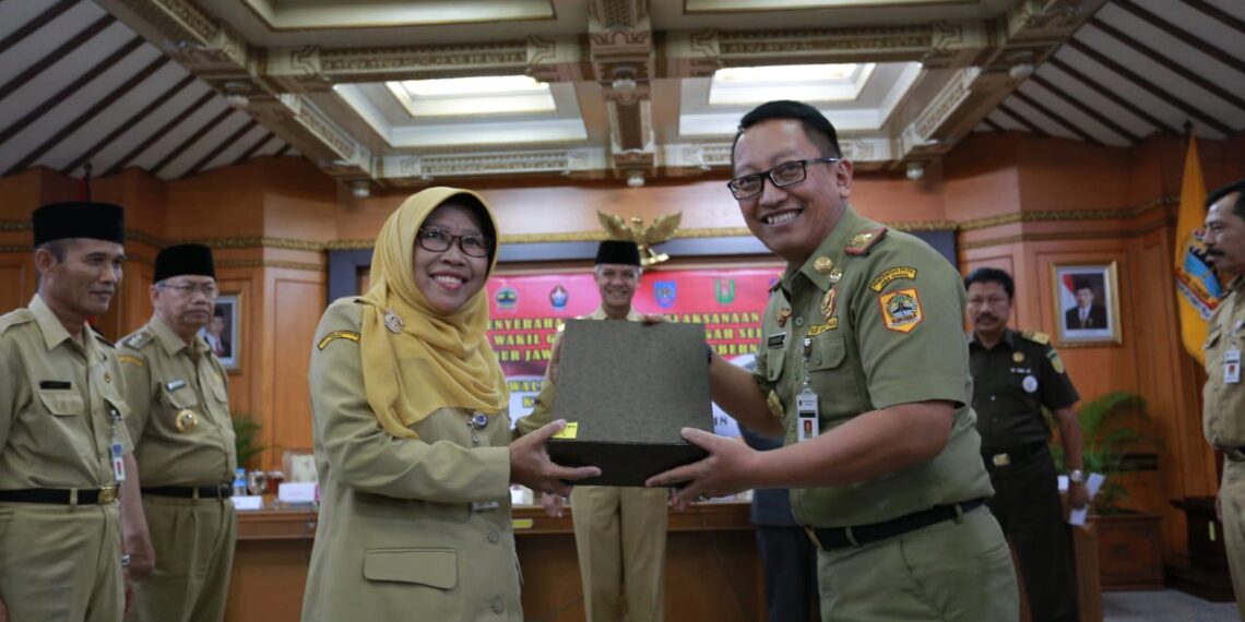 Semarang – Usai menjalani masa cuti diluar tanggungan negara, Umi Azizah melalui Surat Gubernur Jawa Tengah Nomor 131/0009438 tertanggal 21 Juni 2018 ditunjuk untuk melaksanakan tugas dan wewenang Bupati Tegal terhitung sejak tanggal 24 Juni 2018. Prosesi serah terima jabatan Bupati Tegal dari Penjabat sementara (Pjs) Bupati Tegal Sinoeng N Rachmadi dan empat orang Pjs bupati dan walikota lainnya berlangsung di Ruang Rapat Gubernur Gedung A Lantai 2 Sekretariat Daerah Provinsi Jawa Tengah hari Senin (25/6) siang tadi.