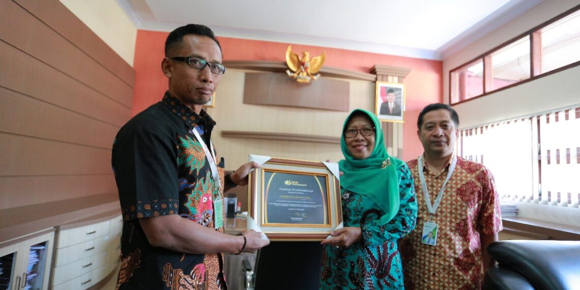Penyerahan penghargaan ini diberikan langsung oleh Kepala Cabang BPJS Ketenagakerjaan Cabang Tegal, Sep Nanda Yunandar kepada Plt Bupati Tegal, Umi Azizah.