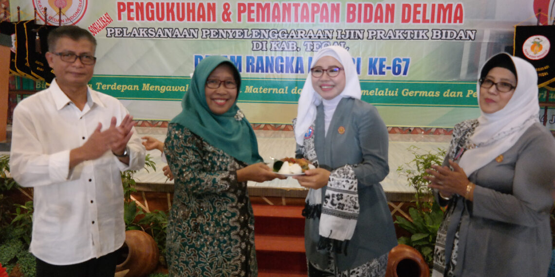 Slawi – Mendukung terwujudnya Kabupaten Layak Anak (KLA), Pemerintah Kabupaten Tegal siapkan 24 Puskesmas untuk melayani pembuatan akta untuk bayi baru lahir. Hal ini disampaikan Plt Bupati Tegal Umi Azizah saat kukuhkan Bidan Delima sebagai rangkaian peringatan Hari Ulang Tahun IBI ke-67 di Hotel Grand Dian Slawi hari Sabtu (14/7) pagi tadi.