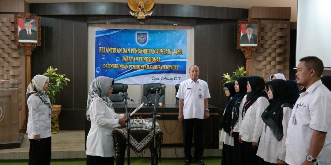 Slawi – Plt. Bupati Tegal, Umi Azizah, melantik dan mengambil sumpah 17 pejabat fungsional di lingkungan Pemerintah Kabupaten Tegal, pada Rabu (8/8).