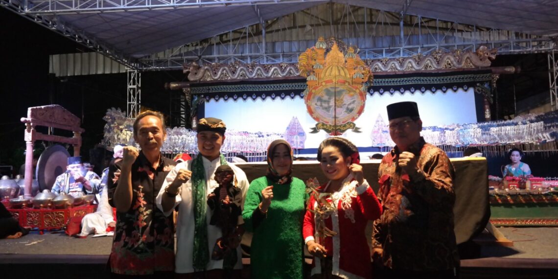 Asisten Administrasi Pembangunan, Moh. Nur Ma’mun, dan Kepala Disparpora, Suharinto, tampak memeriahkan pagelaran wayang, Kamis (23/8) malam.