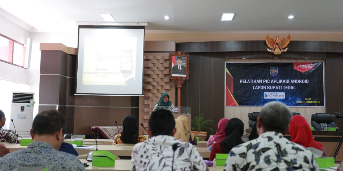 Slawi – Layanan pengaduan masyarakat Lapor Bupati Tegal akan hadir dalam versi Android. Hal ini terungkap saat Plt. Bupati Tegal Umi Azizah membuka acara Pelatihan Person in Charge (PIC) di Ruang Rapat Nusantara Gedung Amartha Lantai 2 Setda Kabupaten Tegal hari Kamis (11/10) ini. Umi mengatakan, aplikasi tersebut dibangun untuk mengelola keluhan warga tentang gangguan layanan publik dalam bentuk pesan multimedia. “Jadi, tidak hanya pesan teks saja tapi juga bisa dilampiri foto dan lokasi dimana permasalahan itu berada”, katanya.