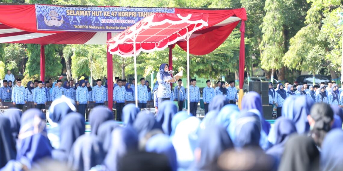 Pernyataan tersebut disampaikan oleh Bupati Tegal, Umi Azizah di hadapan seluruh peserta upacara Hari Ulang Tahun Korpri ke-47 Tingkat Kabupaten Tegal, di Lapangan Pemda, Kamis (29/11/18) pagi.