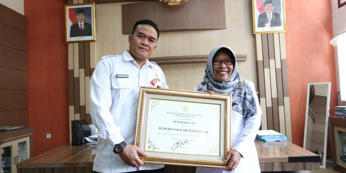 Slawi – Pemerintah Kabupaten Tegal tahun ini kembali meraih penghargaan untuk yang keempat kalinya sebagai kabupaten yang peduli pada Hak Asasi Manusia (HAM) dari Kementerian Hukum dan Hak Asasi Manusia RI.