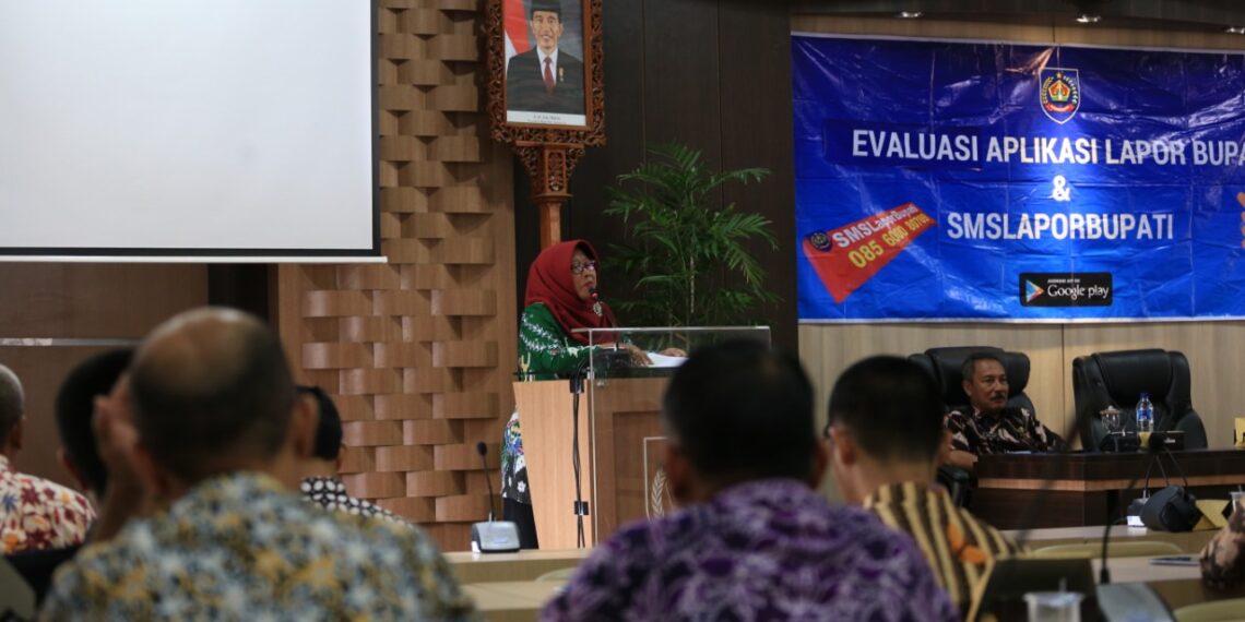 Slawi – Tingkatkan kepuasan layanan publik pemerintah, Bupati Tegal Umi Azizah bersama Bagian Humas dan Protokol Setda mengevaluasi kinerja Aplikasi Lapor Bupati Tegal. Koordinasi yang diikuti seluruh Personil in Charge (PIC) layanan Lapor Bupati ini digelar di Ruang Rapat Bupati, hari Kamis (31/1) pagi kemarin.