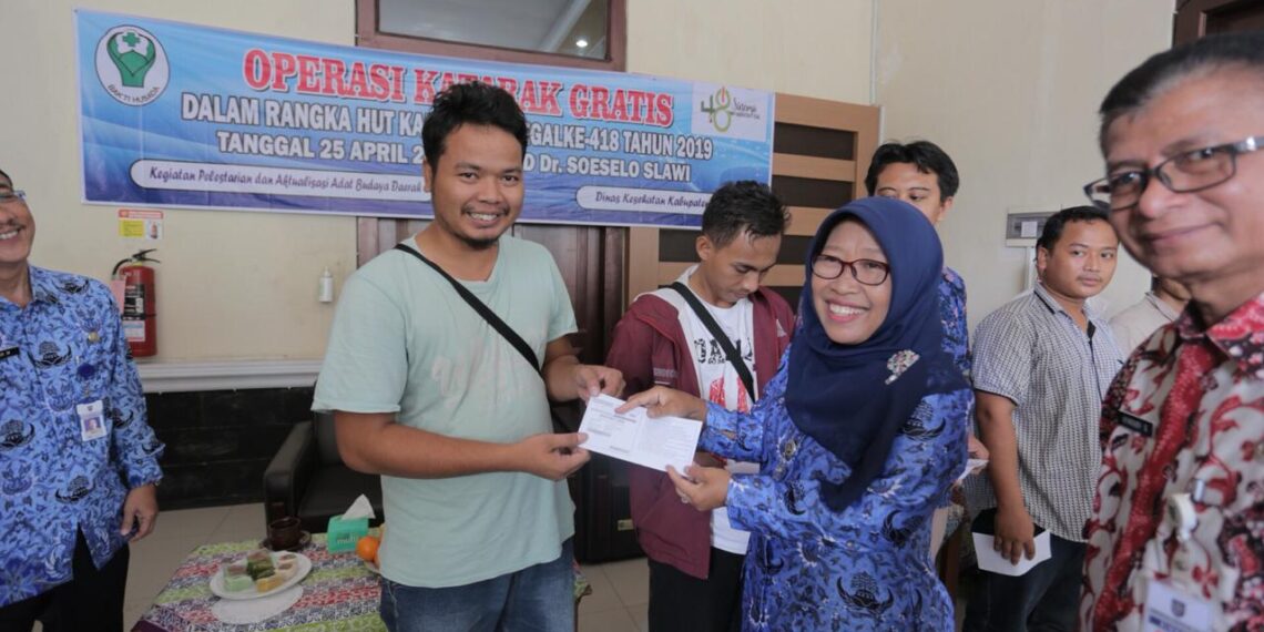 Slawi – Dua puluh lima warga Kabupaten Tegal penderita katarak menjalani operasi katarak secara gratis di RSUD dr. Soeselo, Slawi. Acara bakti sosial ini merupakan serangkaian kegiatan Hari Jadi ke-418 Kabupaten Tegal tahun 2019.