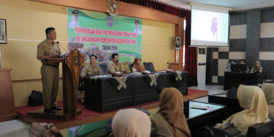 Pesan tersebut disampaikan oleh Sekretaris Daerah Kabupaten Tegal, Widodo Joko Mulyono saat membuka acara dalam Pembekalan Bagi PNS Yang Memasuki Masa Purna Tugas Tahun 2019, di Aula Loka Bina Cipta Bappeda Kabupaten Tegal, Senin (29/4) pagi.