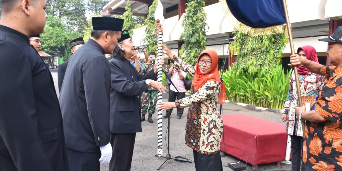 Slawi – Menjelang prosesi kirab budaya yang akan digelar pada 17 – 18 Mei 2019 nanti, Bupati Tegal, Umi Azizah menyerahkan Tombak Kyai Plered serta Pakta Integritas ke keluarga Kalisoka. Prosesi penyerahan Tombak Kyai Plered ini rutin digelar setiap tahun saat acara Hari Jadi Kabupaten Tegal.