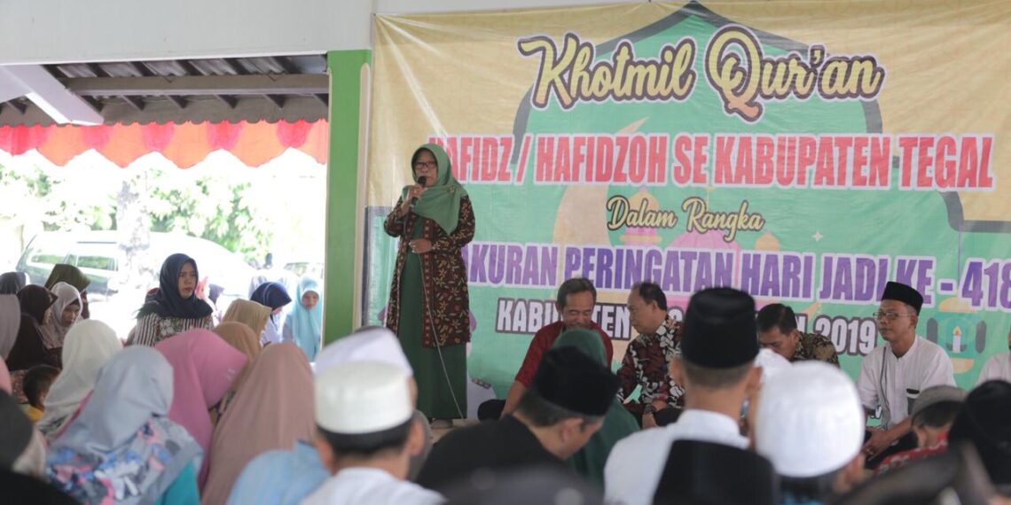 Slawi – Dalam rangka hari jadi yang ke – 418, Pemerintah Kabupaten Tegal mengadakan Tasyakuran dengan kegiatan Khotmil Qur’an 30 Juz diikuti oleh 600 Khafid / Khafidoh se-Kabupaten Tegal, Jumat (17/5) pagi, yang bertempat di pendopo Rumah Dinas Bupati.
