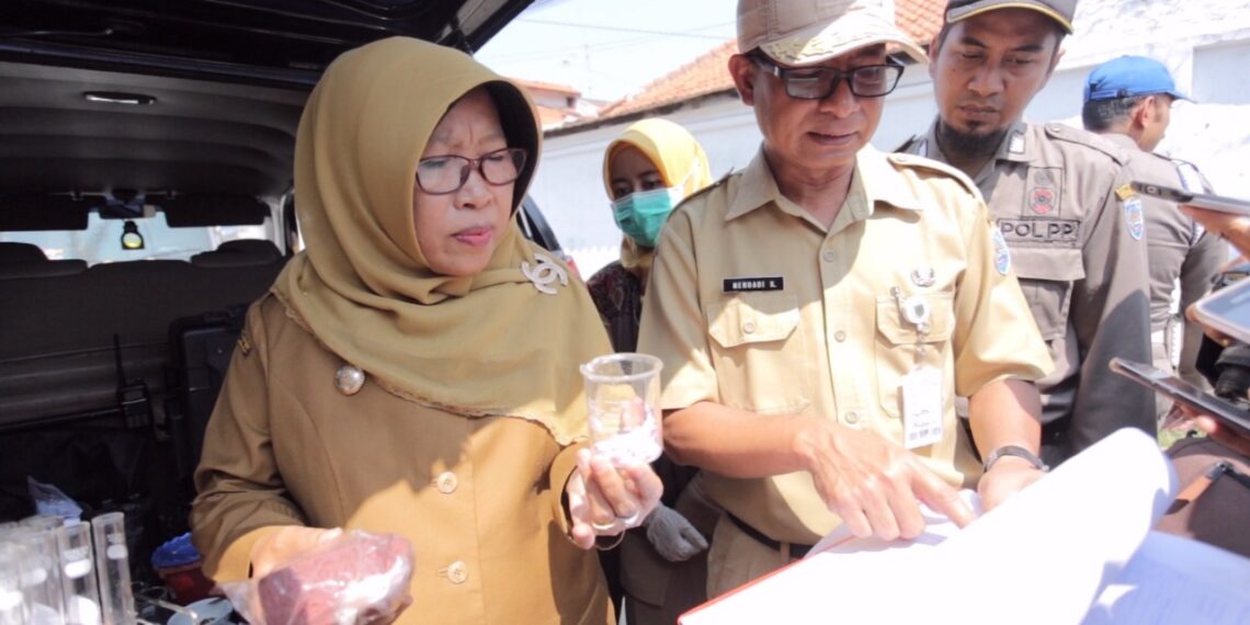 Slawi – Bupati Tegal, Umi Azizah melakukan Inspeksi Mendadak (Sidak) ditemani oleh Tim Sistem Keamanan Terpadu (SKPT) Kabupaten Tegal di tiga tempat. Pasar Banjaran menjadi sasaran pertama Bupati beserta tim SKPT, dari dua belas sampel makanan yang diambil ditemukan kandungan Rhodamin B pada terasi dan sagu mutiara, Senin (20/5) pagi tadi.