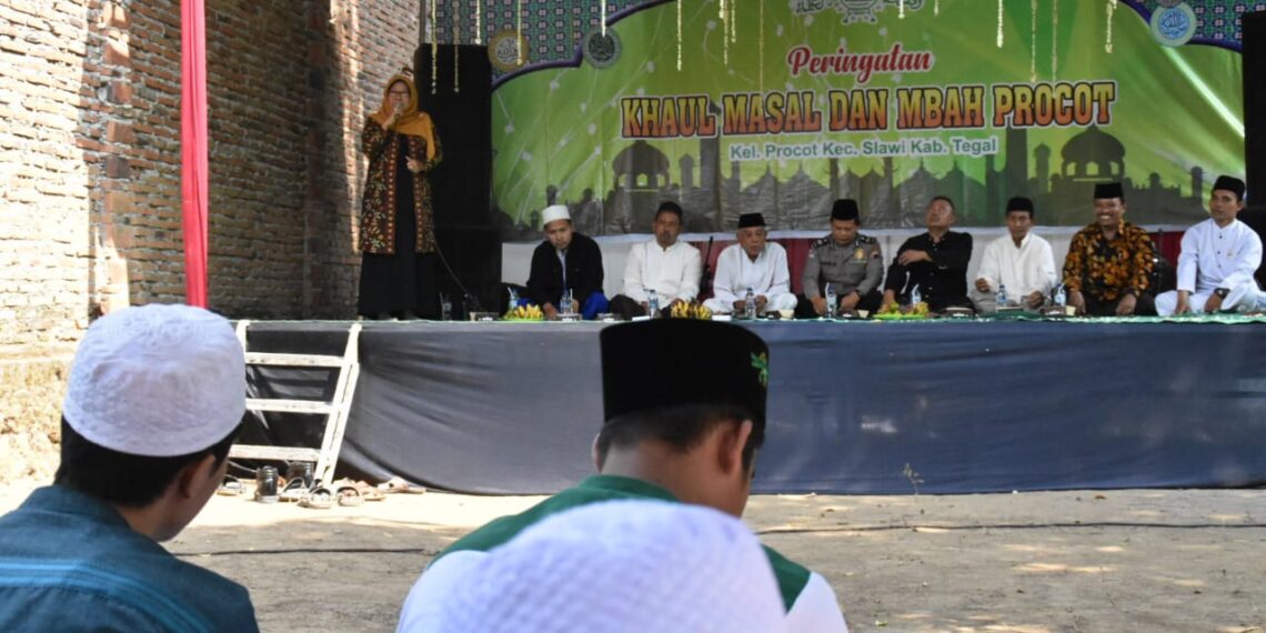 Slawi – Ketiga kalinya Khaul massal Mbah procot diselenggarakan dan Bupati Tegal Umi Azizah hadir ditengah tengah masyarakat, minggu ( 23/6 ) siang, yang bertempat di makam mbah Procot. Nama asli dari mbah procot sendiri adalah Syeh Murofi Bin Hadi dan dimakamkan tahun 1835 H.