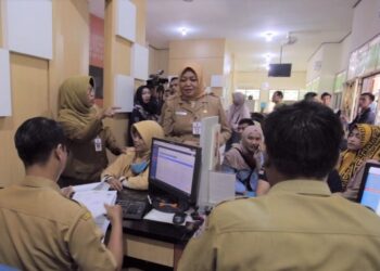Slawi - Hari pertama masuk kerja, Bupati Tegal Umi Azizah lakukan inspeksi ke sejumlah kantor pelayanan publik Pemkab Tegal hari ...