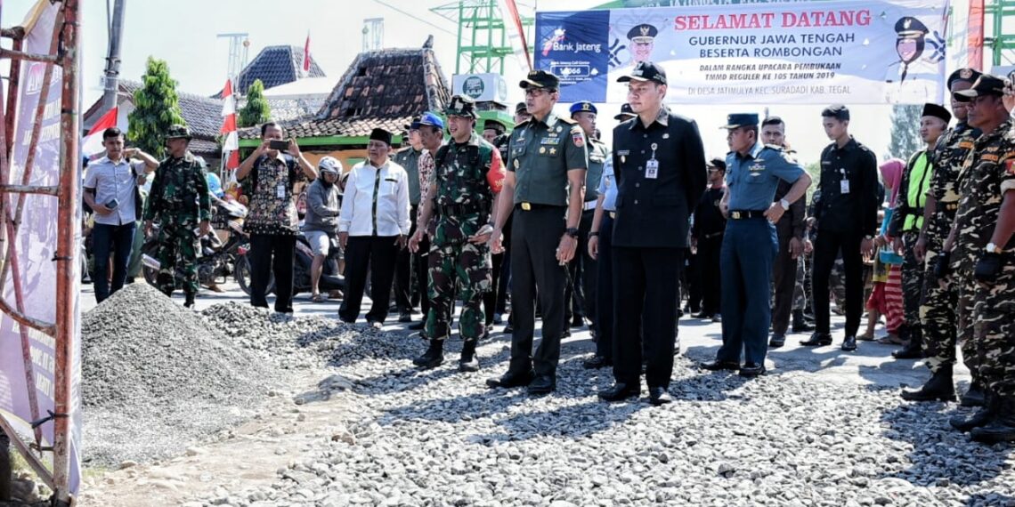 Suradadi – Wakil Bupati Tegal, Sabilillah Ardie membuka acara TNI Manunggal Membangun Desa (TMMD) Reguler ke 105 Tahun 2019 di Lapangan Desa Jatimulya, Kecamatan Suradadi, Kamis (11/7) pagi tadi. Lewat sambutan Gubernur Jawa Tengah, Ganjar Pranowo, Ardie mengatakan TMMD adalah suatu program terpadu antara TNI dan pemerintah daerah yang bertujuan untuk mempercepat pelaksanaan pembangunan daerah.