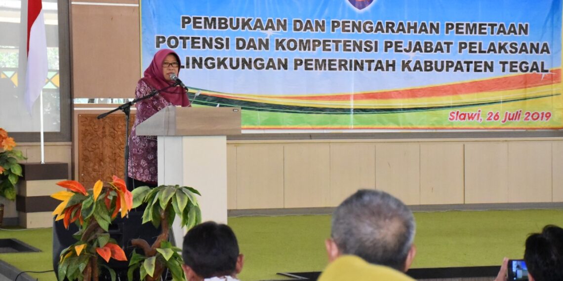 Slawi – Sesuai yang tertuang dalam Undang-Undang Nomor 5 Tahun 2014 tentang Aparatur Sipil Negara (ASN) , bahwa negara ingin mewujudkan ASN yang berintegritas, profesional, melayani dan sejahtera. Hal itu dilontarkan Bupati Tegal, Umi Azizah saat acara Pemetaan Potensi Pejabat Pelaksana di Lingkungan Pemkab Tegal, Jumat (26/7) pagi, di Pendopo Amangkurat.
