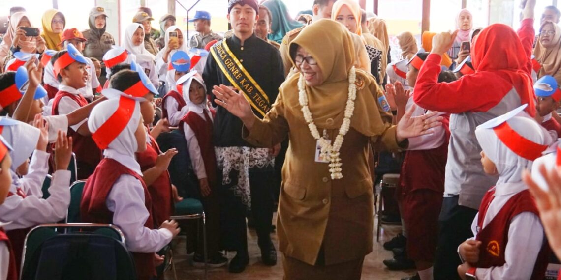 Dalam sambutanya Umi mengatakan, kemeriahan dan keceriaan yang terpancar dari anak -anak yang ada di seantero Kabupaten Tegal, kehangatan, dan kebahagiaan inilah yang harus kita jaga, kita rawat, dan kita kembangkan dalam kehidupan sehari – hari, keluarga , lingkungan sosial maupun di lingkungan pendidikan, karena memang itulah hakekat dunia anak yang sesungguhnya, yaitu bermain, belajar dan bergembira.