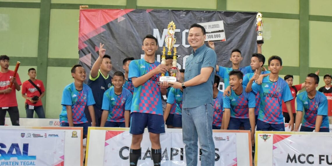 Slawi – Wakil Bupati Tegal, Sabilillah Ardie pada Minggu (4/8) sore hari, menutup acara turnamen futsal tingkat SMP / Mts yang diselenggarakan oleh Manis Cantik Organizer (MCC). Penutupan turnamen tersebut ditandai dengan penyerahan piala oleh Ardie kepada juara pertama yaitu SMP Negeri 2 Brebes, di Stadion Indoor Gor Trisanja Slawi.