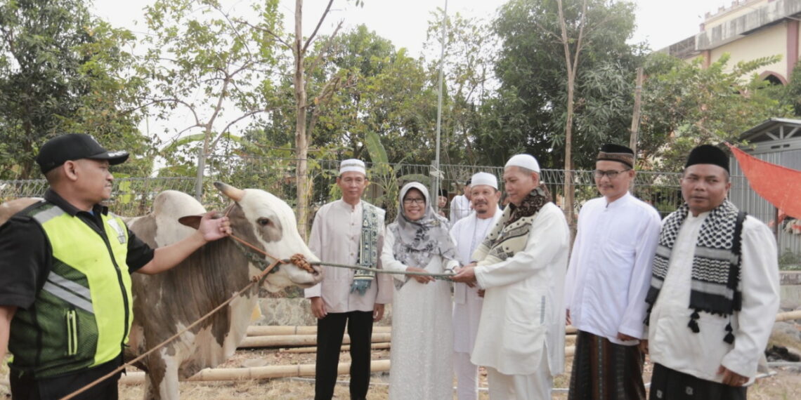 Slawi – Bupati Tegal Umi Azizah pada Hari Raya Idul Adha 1440 Hijrah kali ini, berkesempatan menunaikan ibadah sholat Ied di Masjid Agung Kabupaten Tegal, pada Minggu (11/8) pagi. Dalam momentum baik ini, Umi juga memberikan satu ekor sapi berukuran besar untuk dikorbankan. Penyerahan sapi tersebut dilakukan oleh Bupati Tegal kepada Panitia Qurban Masjid.