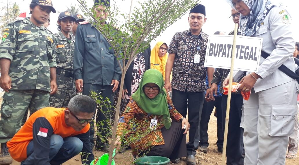 Balapulang – Penanaman pohon oleh Bupati Tegal Umi Azizah didampingi Kepala Desa Mujiono menandakan diresmikanya Sarana Olahraga (SORGA) Desa Kalibakung, Kamis (22/8) pagi, bertempat di lapangan sepak bola desa Kalibakung.