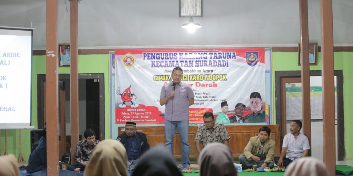 SURADADI – Anak Muda atau akrab disebut sebagai kaum millenial Suradadi yang tergabung dalam Karang Taruna menggelar acara Moci Karo Ndopok (Cipok) bersama Wakil Bupat Tegal Sabilillah Ardie. Kegiatan yang mengusung tema “Nasionalisme di Kalangan Millenial” ini diselenggarakan di Pendopo Kecamatan Suradadi pada Selasa malam (27/8).