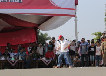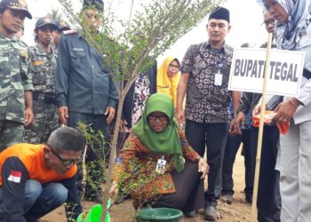 Balapulang - Penanaman pohon oleh Bupati Tegal Umi Azizah didampingi Kepala Desa Mujiono menandakan diresmikanya Sarana Olahraga (SORGA) Desa Kalibakung, ...