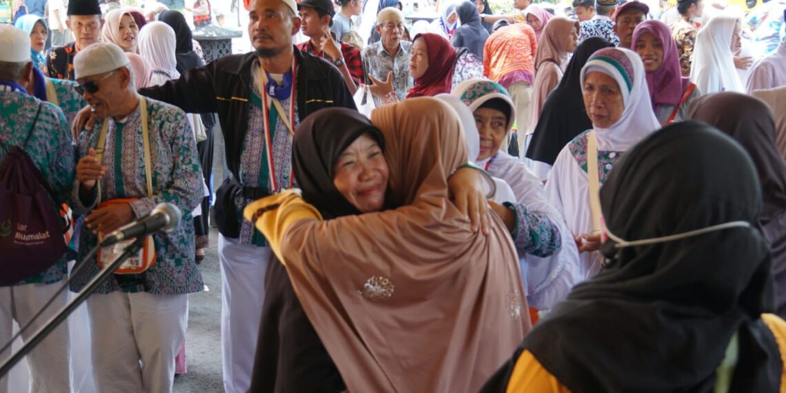 Slawi – Sebanyak 179 orang jamaah haji Kabupaten Tegal dari kloter 46 tiba di Pendopo Amangkurat, Minggu (1/9). Mereka disambut Bupati Tegal Umi Azizah bersama forkompinda. Suasana haru dan bahagia dirasakan oleh jamaah, demikian juga dengan para penjemput jamaah.