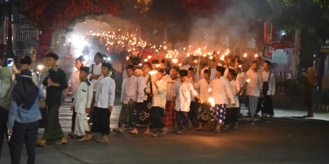 Slawi – Pawai Obor dalam rangka memperingati Malam Tahun Baru Islam 1441 Hijriyah tingkat Kabupaten Tegal diikuti oleh ribuan santri pada Minggu (15/9) malam. Ribuan santri ini berasal dari pondok pesantren yang terdapat di Kabupaten Tegal. Seperti Darussalam Kalibakung, Salsabila Tuwel, Misbahul Huda Al Amiriah Kambangan, Hasyim Asyari Tarub dan lain sebagainya.