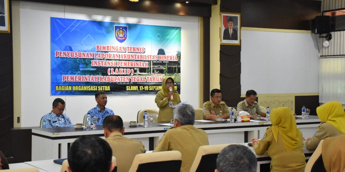 Slawi – Meningkatnya capaian nilai SAKIP Kabupaten Tegal di tahun 2018 yang mendapat predikat B dengan nilai 60,10. Membuat Bupati Tegal Umi Azizah mengajak seluruh ASN di lingkungan Pemkab Tegal untuk terus berbenah terutamanya dalam hal meningkatkan akuntabilitas kinerja dan pelayanan publik untuk semakin baik, semakin responsif dan memuaskan. Hal ini diungkapkan Umi pada acara Bimtek Penyusunan Laporan Akuntabilitas Kinerja Instansi Pemerintah atau Sistem Akuntabilitas Instansi Pemerintah (LAKIP / SAKIP), di Ruang Rapat Gedung Chandra Kirana Setda Pemkab Tegal, Selasa (17/9) pagi.
