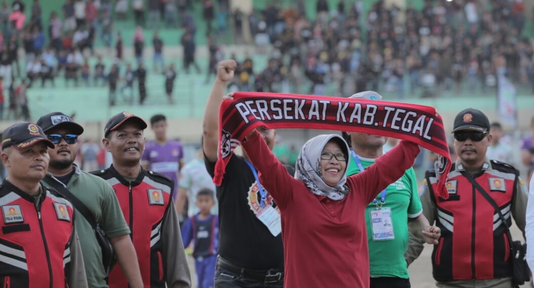 Slawi – Ada hal yang berbeda saat pertandingan Persekat melawan PPSM Magelang pada ajang Liga 3 2019 Jawa Tengah yang berlangsung di Gor Tri Sanja Slawi, Rabu (19/8) sore tadi. Pasalnya, pertandingan sengit ini disaksikan oleh orang nomor satu di Kabupaten Tegal yaitu Bupati Tegal Umi Azizah. Dengan dukungan semangat dari Bupati serta Skaters atau fans fanatik Persekat, mampu membawa Tim Laskar Ki Gede Sebayu ini unggul menaklukkan PPSM Magelang dengan skor 2-0, yang dicetak oleh Gani Lukman dan Hamdi A Sula.