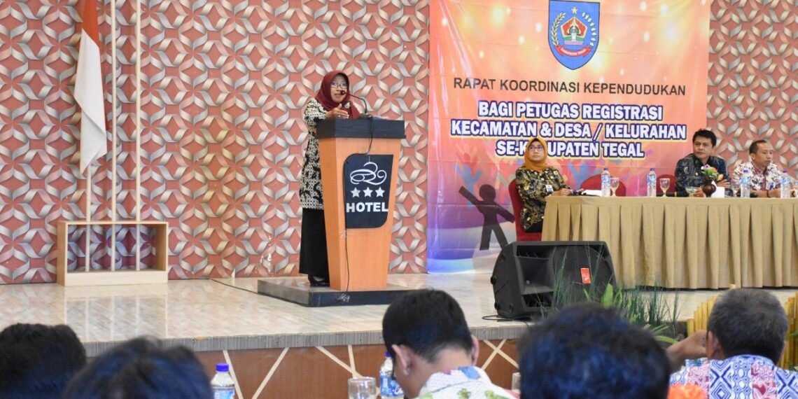 Slawi – Demi mewujudkan pelayanan yang maksimal pada pengurusan dokumen administrasi kependudukan (adminduk), Dinas Kependudukan dan Catatan Sipil (Disdukcapil) Kabupaten Tegal membuat terobosan baru dengan meluncurkan aplikasi Sistem Informasi Registrasi Penduduk (SIReP). Informasi ini disampaikan Bupati Tegal Umi Azizah saat membuka acara Rapat Koordinasi Petugas Registrasi Desa, Kelurahan dan Kecamatan se-Kabupaten Tegal di Ball Room Hotel Grand Dian, Slawi, Kamis (26/09/2019) pagi.