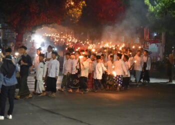 Slawi - Pawai Obor dalam rangka memperingati Malam Tahun Baru Islam 1441 Hijriyah tingkat Kabupaten Tegal diikuti oleh ribuan santri ...