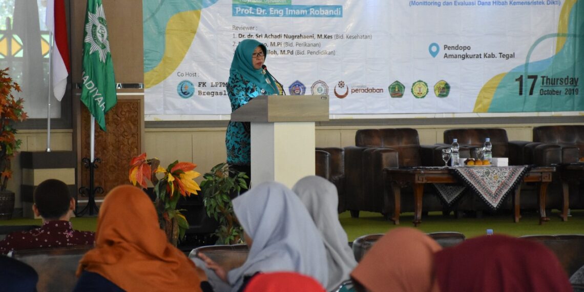 Slawi – Di pundak para penerima dana hibah Kementerian Riset, Teknologi dan Pendidikan Tinggi Republik Indonesia (Ristekdikti), Bupati Tegal Umi Azizah berharap hasil penelitian atau riset dari dosen maupun peneliti dapat dimanfaatkan dan digunakan masyarakat luas, termasuk kalangan industri dan kewirausahaan. Hal tersebut disampaikan Umi saat membuka acara Seminar Nasional dan Seminar Hasil Penelitian dan Pengabdian Kepada Masyarakat, di Pendopo Amangkurat Setda Kab. Tegal, Kamis (17/10) pagi.