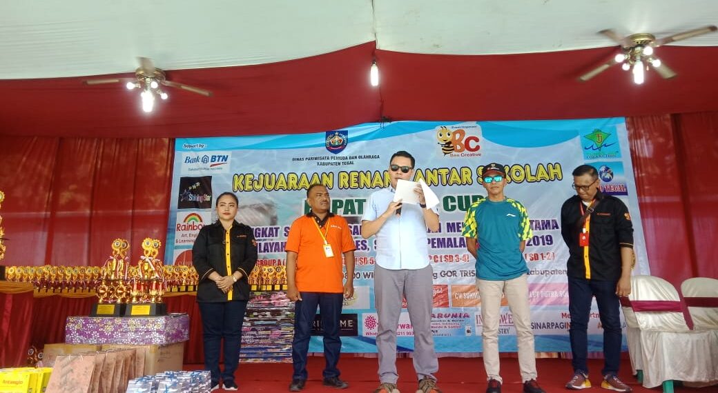 Slawi – Usai membuka acara Gelar Budaya di Alun-alun Hanggawana Slawi, Wakil Bupati Tegal Sabilillah Ardie membuka Kejuaraan Renang Antar Sekolah Piala Bupati Tegal Cup 2019 yang berlangsung di Kolam Renang Gor Tri Sanja, Slawi pada Minggu (17/11) siang tadi.