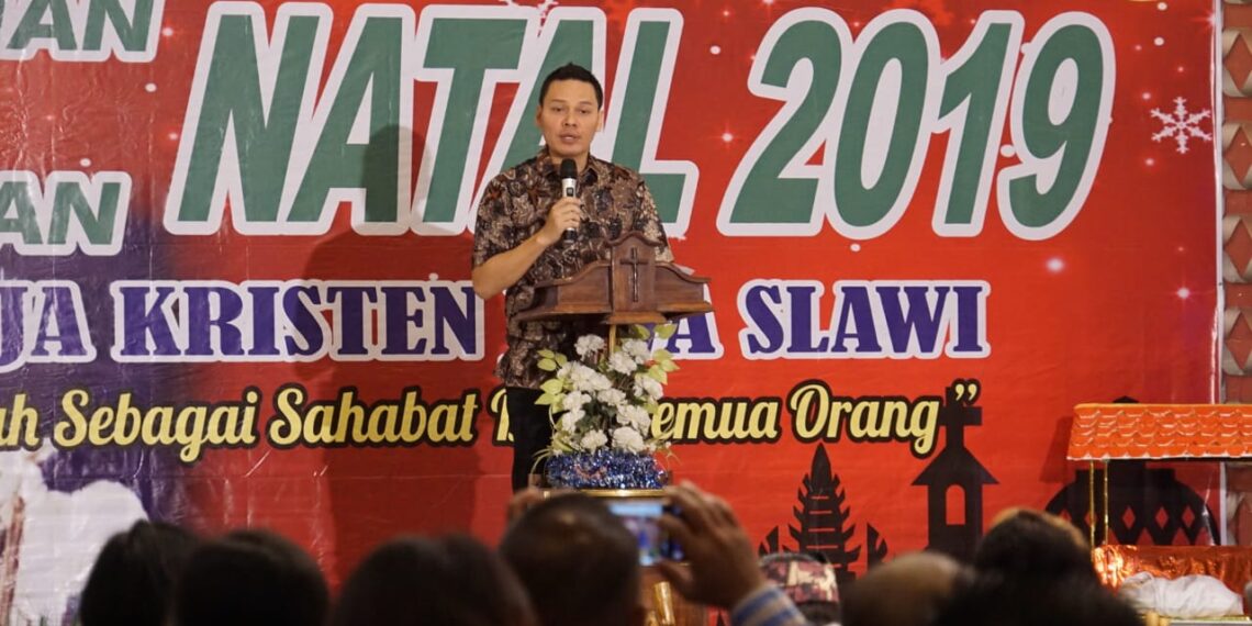 Slawi – Wakil Bupati Tegal Sabililah Ardie pada saat menghadiri acara Perayaan Natal yang diselenggarakan oleh Gereja Kristen Jawa (GKJ) Slawi, mengingatkan pentingnya nilai kebersamaan dalam keberagaman. Karena menurut Ardie, Indonesia di dalamnya menaungi kehidupan 266 juta jiwa yang warganya bersuku-suku bangsa, beragama dan berbudaya. “Takdir Tuhan untuk bangsa Indonesia adalah keberagaman dan jalan terbaik bagi bangsa ini adalah kebersatuan yang harus kita syukuri,” kata Ardie saat memberi sambutan di Hotel Grand Dian Slawi pada Rabu (25/12) pagi tadi.