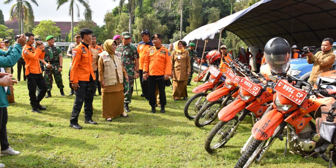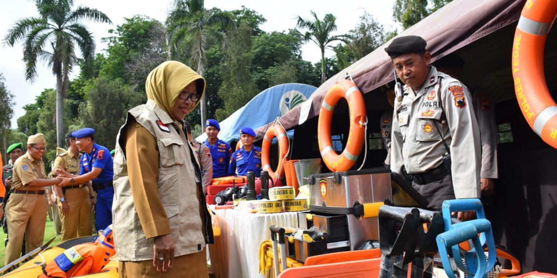 Slawi – Mengantisipasi terjadinya bencana yang bisa datang dimana saja, Bupati Tegal Umi Azizah mengecek sejumlah alat yang dipergunakan untuk membantu masyarakat dalam menghadapi terjadinya bencana. Pengecekan itu dilakukan Umi usai menjadi pemimpin Apel Terpadu Kesiapsiagaan Penanggulangan Bencana pada Selasa (21/1) di Lapangan Pemda Kabupaten Tegal.