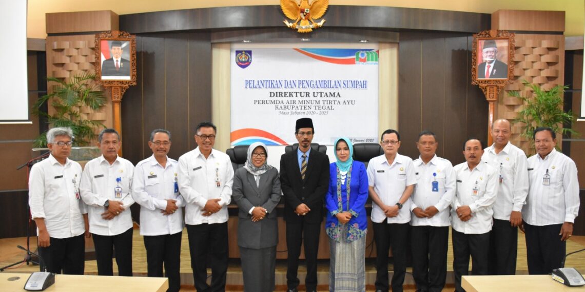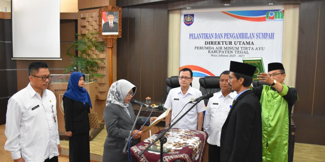 Slawi – Bupati Tegal Umi Azizah kembali melantik Direktur Utama Perusahaan Umum Daerah Air Minum (Perumda) Tirta Ayu Brahmono Weko Pujiono, Rabu (22/1) di Ruang Rapat Bupati. Dalam sambutannya Ia berkali-kali mengingatkan tentang masalah klasik yang sering muncul kepermukaan, yaitu respon kepada pelanggan akan gangguan layanannya.