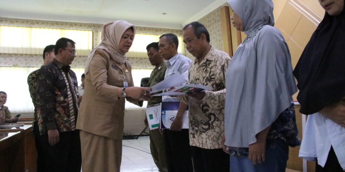 Slawi – Kepala Badan Kepegawaian Pendidikan dan Pelatihan Daerah Kabupaten Tegal Retno Suprobowati mengingatkan kepada ahli waris penerima Jaminan Hari Tua dan Jaminan Kematian, tentang penipuan yang mengatasnamakan institusinya ataupun PT. Taspen. Hal ini disampaikannya ketika menyerahkan jaminan tersebut kepada tujuh ahli waris pegawai yang meninggal dunia, Selasa (28/1) di aula gedung BKD lantai dua.