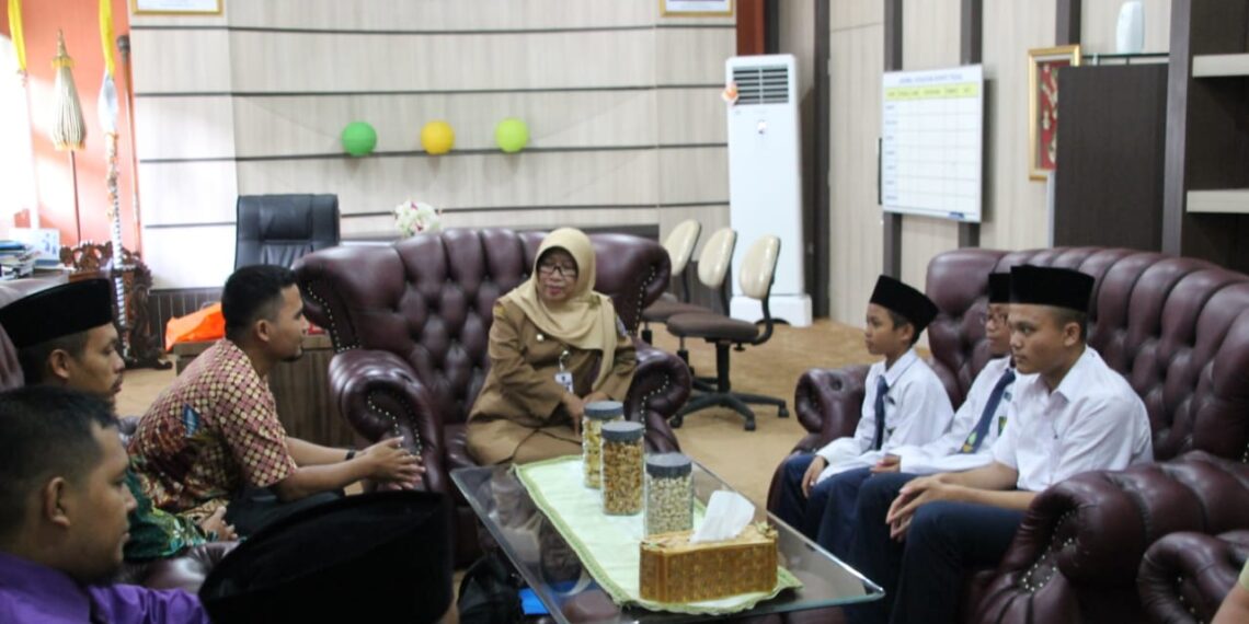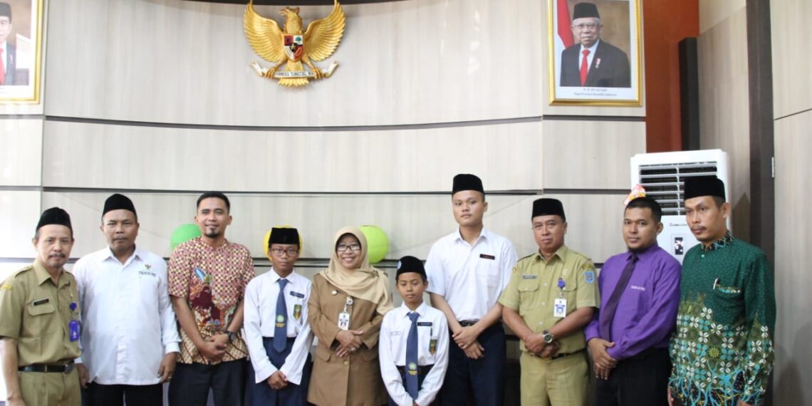 Slawi – Menjelang kompetisi ajang World Robotic For Peace 2020 di Malaysia, Bupati Tegal Umi Azizah didampingi Badan Amil Zakat Nasional (BAZNas) memberikan dukungan berupa bantuan uang tunai kepada tiga santri Madrasah Tsanawiyah (MTs) Ahmad Dahlan Kabupaten Tegal. Pemberian bantuan tersebut dilangsungkan pada Selasa (28/01) di Ruang Kerja Bupati.