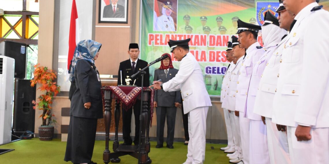 Slawi – Bupati Tegal Umi Azizah melantik 63 Kepala Desa hasil pemilihan Pilkades serentak gelombang III Tahun 2019. Pelantikan itu berlangsung di Pendopo Amangkurat Setda Pemkab Tegal pada Rabu (5/2) pagi. Usai melantik dan mengambil sumpah jabatan, Umi mengajak kepala desa yang baru untuk mengambil perannya dalam hal mencegah supaya anak-anak tidak putus sekolah.