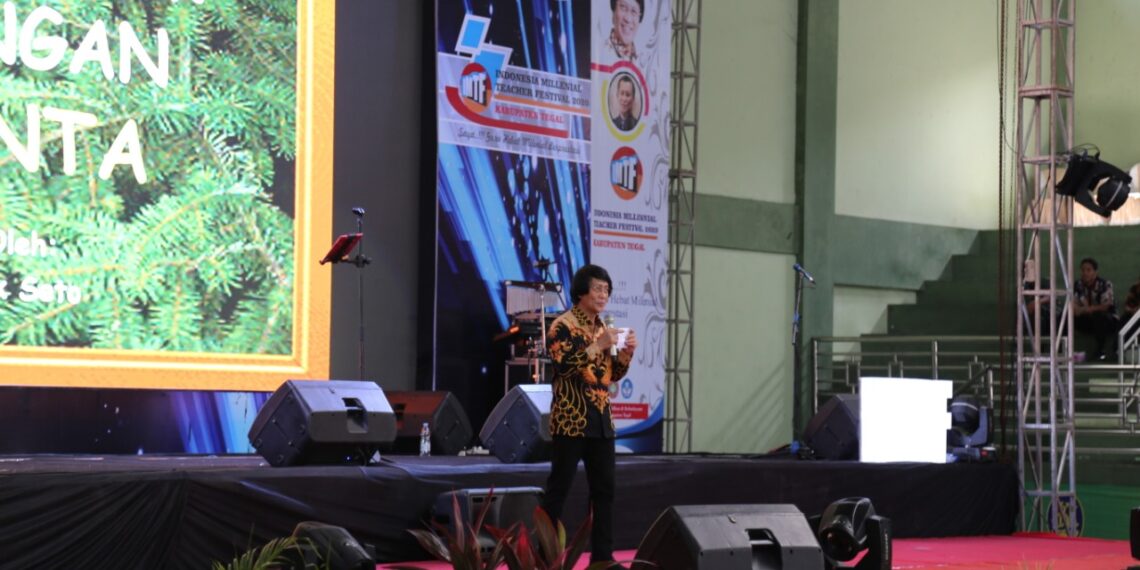 Slawi – Perkembangan teknologi internet menuntut guru harus semakin cerdas dalam mendidik anak salah satunya memposisikan diri sebagai sahabat siswa. Hal tersebut disampaikan Ketua Komisi Perlindungan Anak, Seto Mulyadi dalam seminar Indonesia Millenial Teacher Festival, Kamis (06/02) di Gedung Pemuda dan Olahraga Kabupaten Tegal.