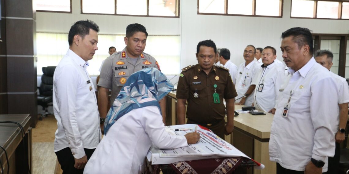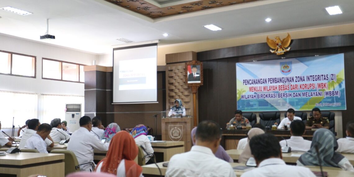 Slawi – Peningkatan kualitas layanan yang baik, cara kerja yang efektif dan efisien, serta pengawasan dan pengendalian internal secara transparansi menurut Bupati Tegal Umi Azizah mampu mencegah terjadinya praktik korupsi ataupun penyalahgunaan kewenangan. Karena menurut Umi muara dari zona integritas adalah layanan yang bermutu. Hal tersebut disampaikan Umi pada acara Pencanangan Zona Integritas di Lingkungan Pemkab Tegal Menuju Wilayah Bebas dari Korupsi (WBK) dan Wilayah Birokrasi Bersih dan Melayani (WBBM), di Ruang Rapat Bupati Tegal pada Rabu (12/2) pagi.