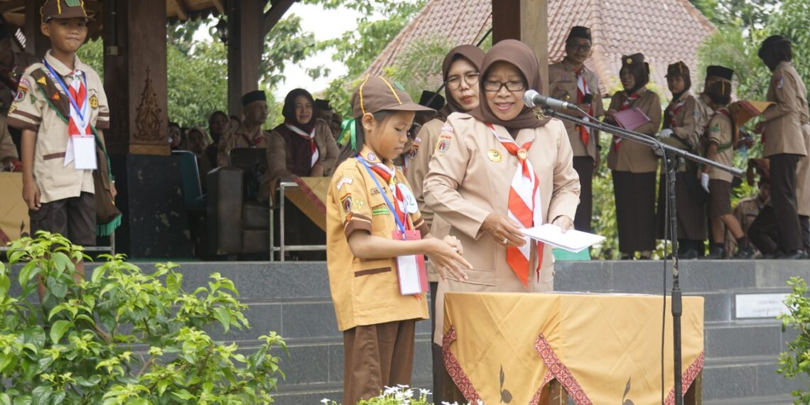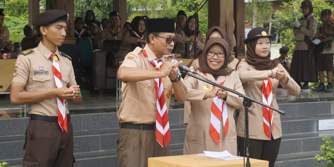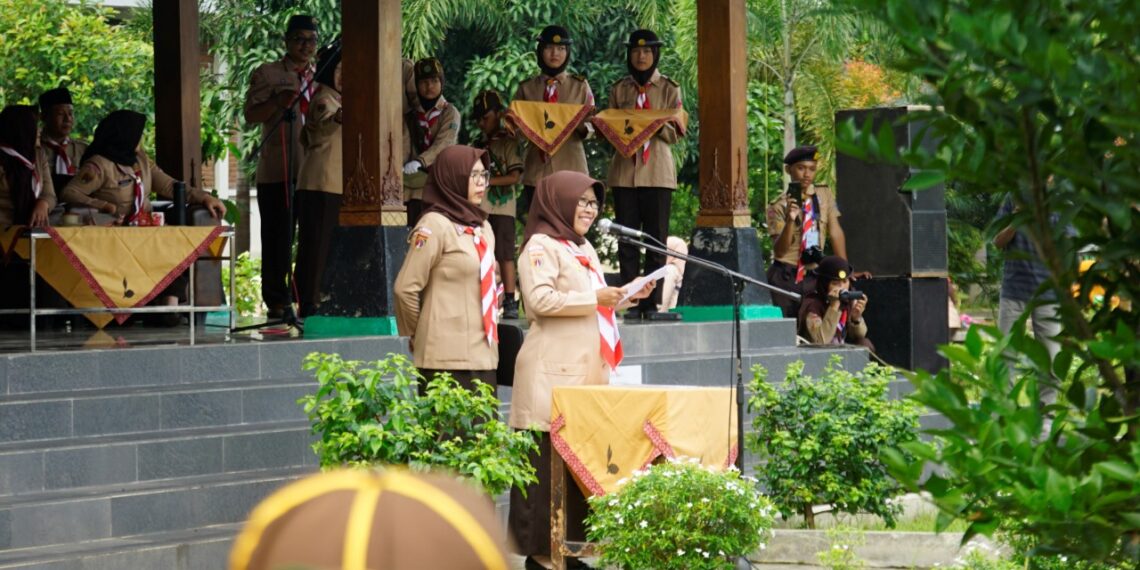 Lebaksiu – Bupati Tegal Umi Azizah bersama Kepala Dinas Kesehatan Hendadi Setiaji memberikan kursus singkat mencuci tangan sesuai standar WHO (World Health Organization), saat memberikan amanat pada upacara pembukaan Pesta Siaga Kwartir Cabang (Kwarcab) Tegal, Sabtu (7/3) di Taman Teknologi Pertanian, Kesuben. Langkah tersebut diperlukan untuk mengajarkan sejak dini, tentang antisipasi mewabahnya Virus Corona. Bukan hanya itu, Umi juga menekankan, pramuka harus menjadi pelopor perilaku hidup sehat untuk pencegahan terhadap penularan penyakit.