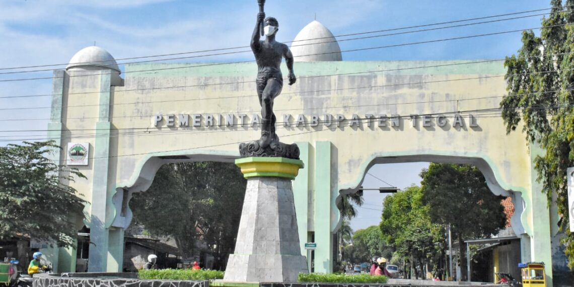 Slawi – Kampanye Pemerintah dalam mencegah penularan Covid-19 melalui penggunaan masker ini ditangkap serius Bupati Tegal Umi Azizah dengan mempromosikan gerakan penggunaan masker di masyarakat. Media luar ruang seperti Patung Obor di perempatan Pakembaran Slawi pun tak luput dari bidikannya.